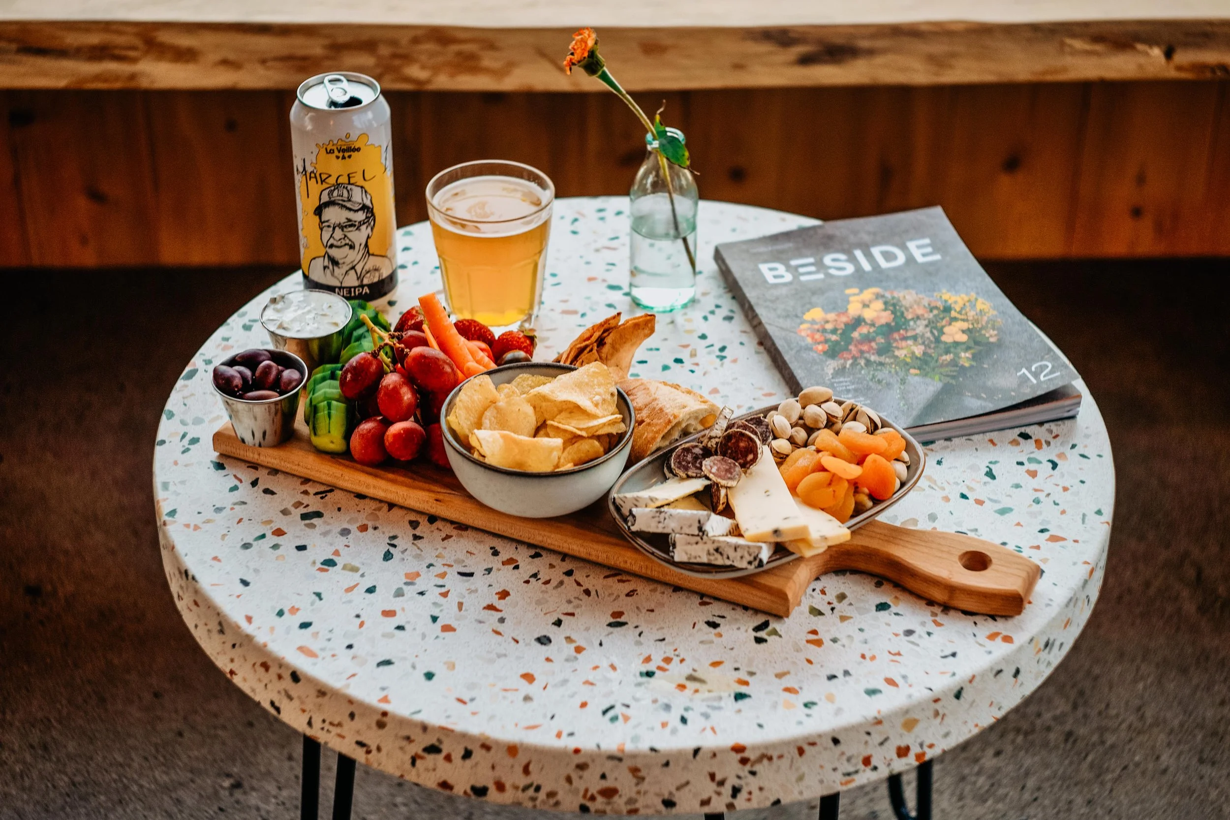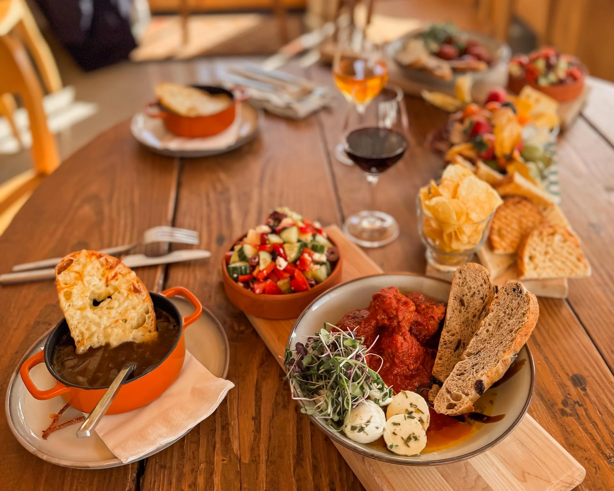Ici, le menu s’articule autour de l’apéro — convivial, saisonnier, ancré dans le territoire. Des ingrédients d’ici, présentés simplement, à partager et à savourer lentement.