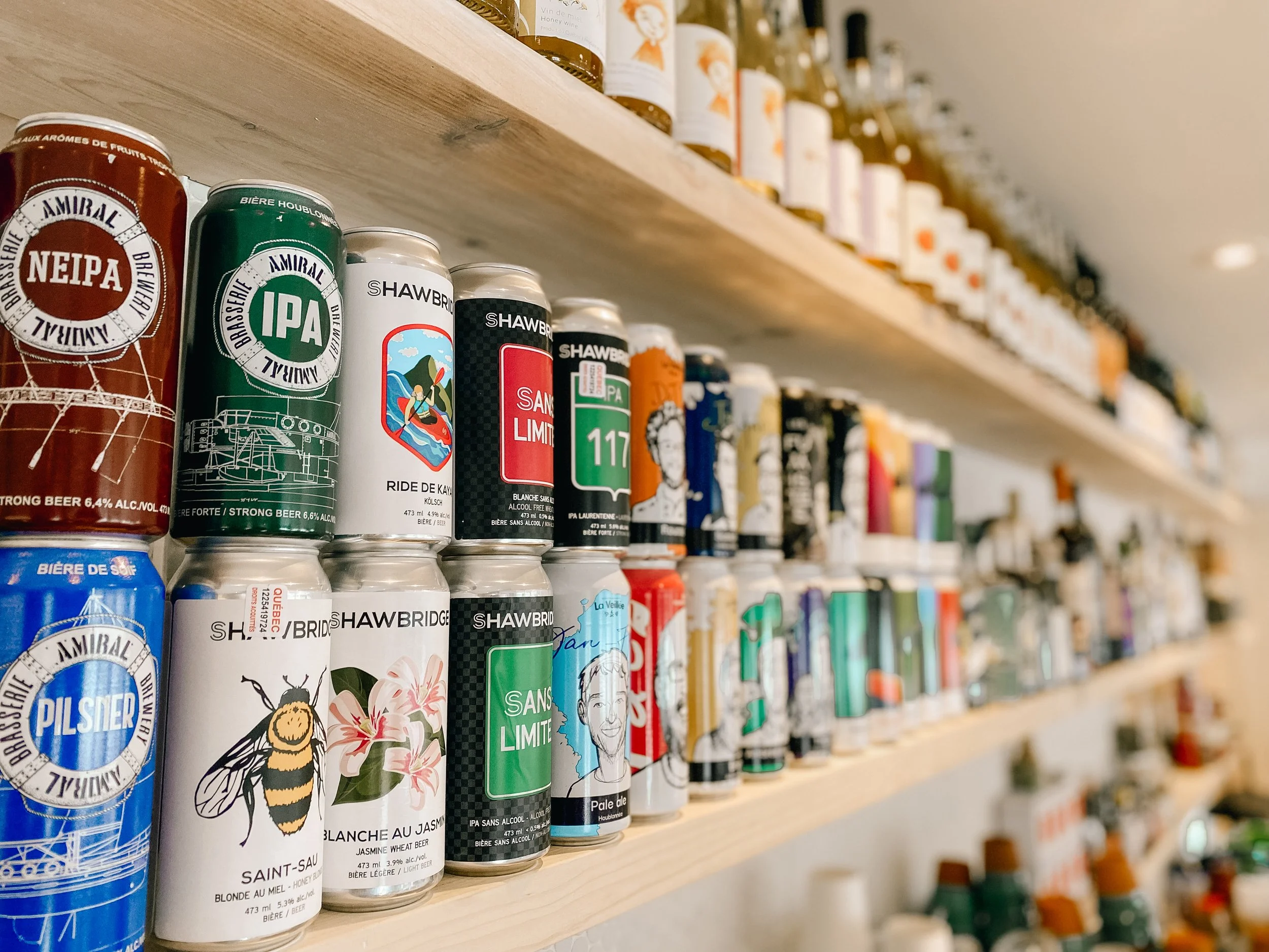 Chaque produit raconte le paysage : les récoltes de nos jardins, les saveurs boréales, les microbrasseries voisines, les bouteilles choisies avec soin.