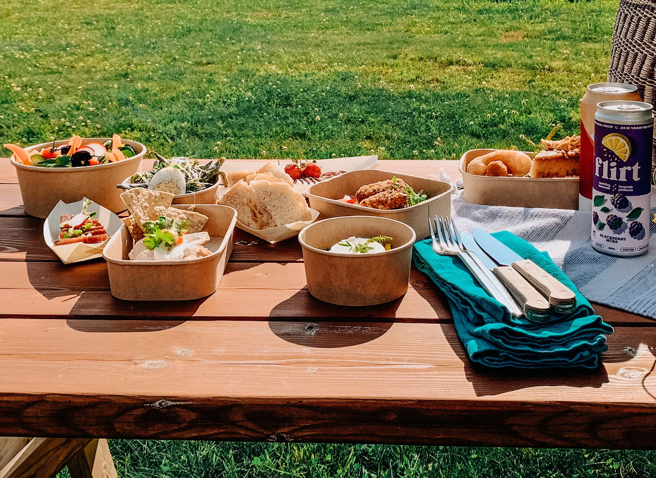 À emporter vers la forêt, la rivière ou un coin choisi au soleil — un repas soigné, prêt à nourrir le corps et prolonger l’expérience, sans rien distraire de l’essentiel.