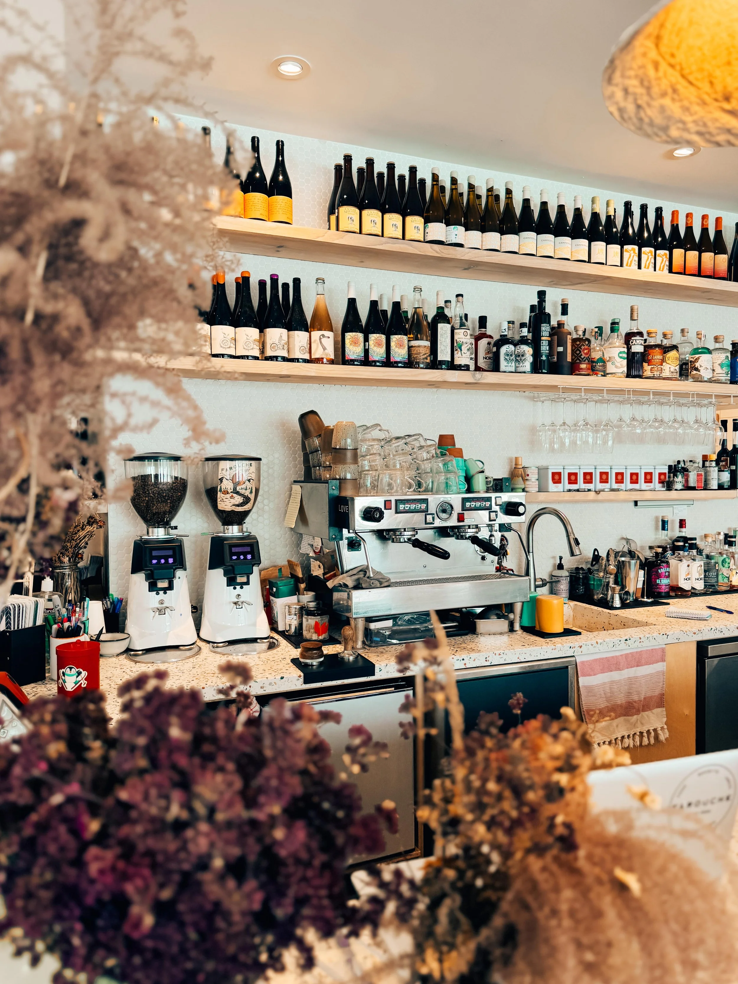 Nous proposons également une sélection soignée de bières artisanales issues des meilleures microbrasseries des Laurentides, ainsi qu’une carte vivante de vins nature, abondante et assumée, qui met également à l’honneur de belles cuvées québécoises.