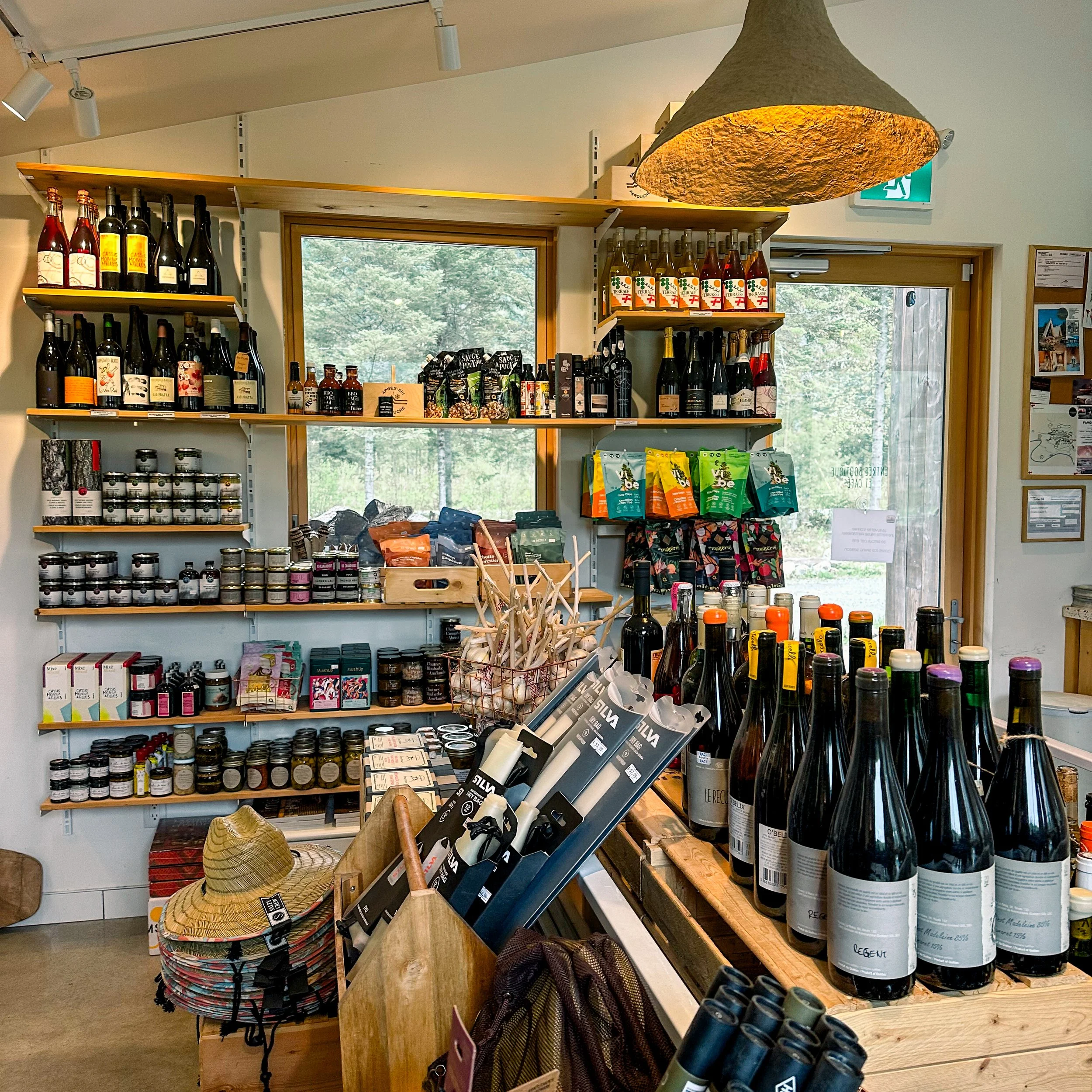 On y trouve une sélection choisie de produits locaux pour improviser un pique-nique, composer un apéro au grand air ou préparer des grillades à cuire sur le feu. Ingrédients du territoire, trouvailles saisonnières, belle bouteille en importation privée, 4-pack de micro des Laurentides — tout est là pour goûter pleinement au lieu.