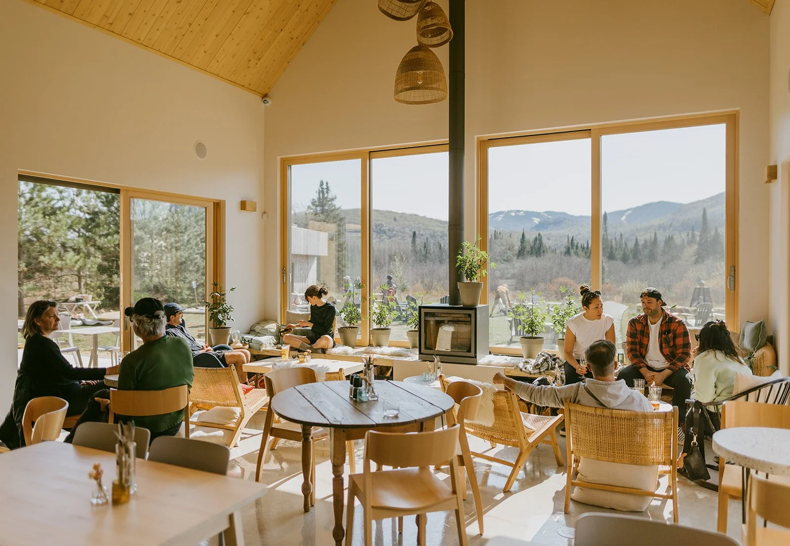 Un refuge dans le refuge. Un lieu vibrant et chaleureux où l’on revient après avoir marché, pagayé, skié. Là où le froid quitte les joues, où les épaules se déposent, où les récits de la journée prennent forme autour d’un verre.