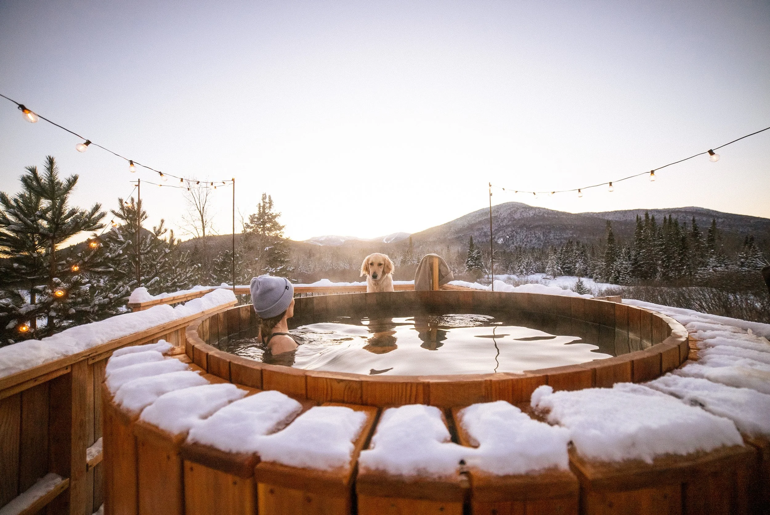 Un bain nordique avec vue majestueuse sur le versant nord de tremblant et le coucher du soleil. 1h exclusive que vous pourrez réserver sans frais avec chacune de vos nuitées en refuge.